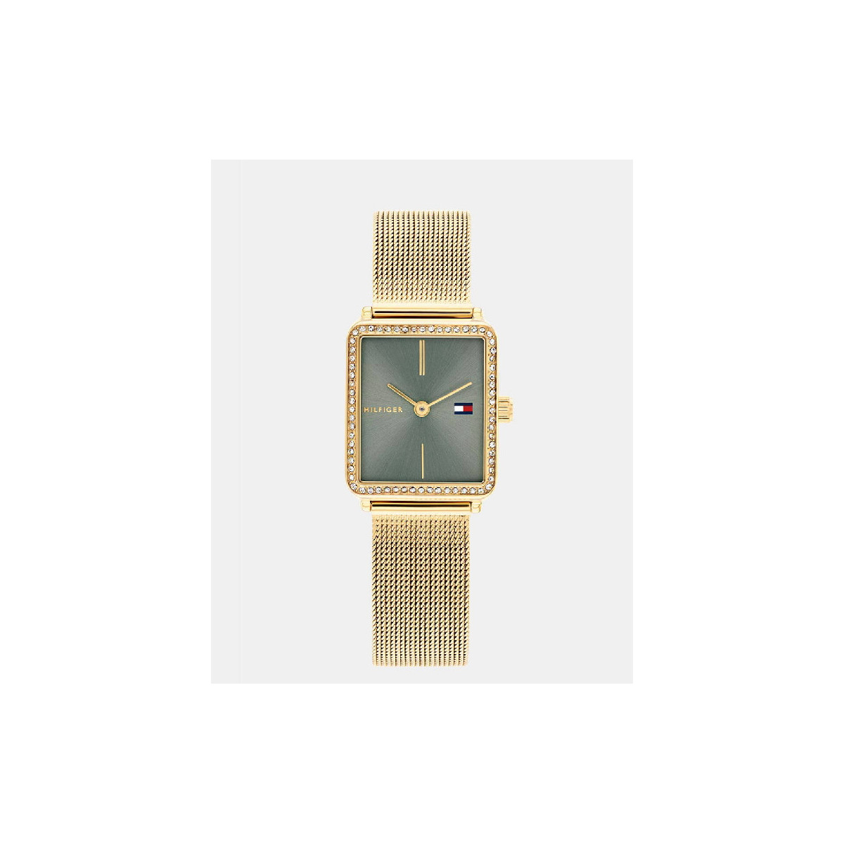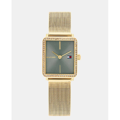 Tenemos disponible en Joyería Antonio Cordón el elegante reloj Tommy Hilfiger para mujer modelo 1782791, perteneciente a la sofisticada colección Tea. Este diseño destaca por su caja rectangular de acero inoxidable pavonado en oro amarillo, con unas dimensiones refinadas de 21,3 x 24,3 mm, que aportan un estilo delicado y femenino.Su distintiva esfera en tono verde matcha le confiere un aire moderno y original, ideal para quienes buscan un accesorio con personalidad. El brazalete de malla milanesa en acero inoxidable pavonado oro amarillo completa este reloj con un acabado sofisticado y cómodo, adaptándose perfectamente a tu muñeca.Este modelo funciona con un movimiento de cuarzo analógico de dos agujas, protegido por cristal mineral. Ofrece una resistencia al agua de hasta 30 metros, perfecta para el uso diario, aunque no apta para inmersiones.Un reloj con carácter, ideal para realzar tus looks con un toque de distinción y elegancia.